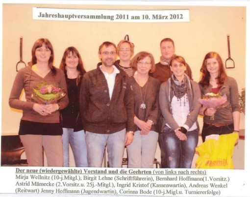 Neu gewählter Vorstand und die Geehrten im Frühjahr 2012
